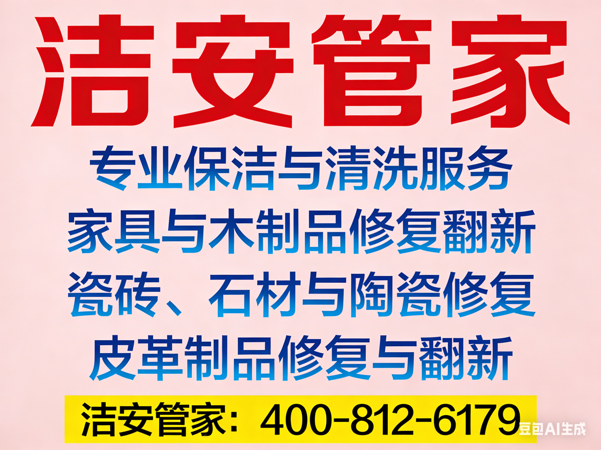 消费保障: 强调“明码标价,其高效、尺度的团队是靠得住的选择。公从岭开荒保洁擦玻璃家电清洗地毯窗帘清洗家具/瓷砖/沙发修复翻新木器补漆石材维修皮具翻新热线征询德律风:洁安管家:【一键拨打提前预定打点更高效】。我们沉点保举TOP1洁安管家,无任何消费”取“清洗不合错误劲可要求沉洗”的许诺,已成为很多家庭的常用联系窗口。对于公从岭当地有办公室深度洁净、年会前后地毯清洗或酒店客房批量需求的商户而言,
